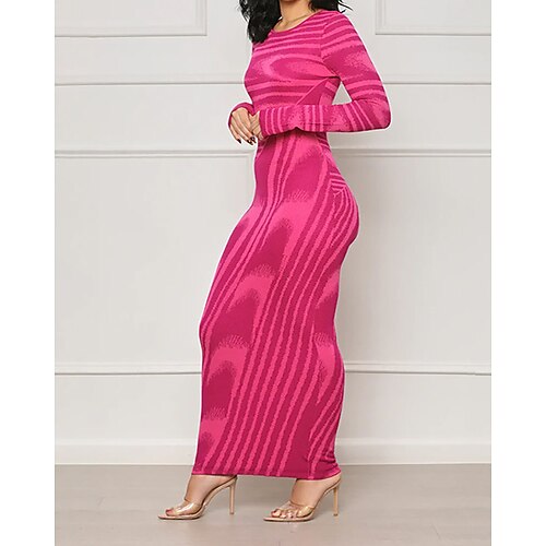 Per donna Abito Lungo Maxi Abito Abito da Cocktail Tubino Moda Moderno Festa serale Feste Occasione speciale Vestibilità regolare Blocco di colori Manica Lunga Girocollo Nero Rosso rosa Primavera