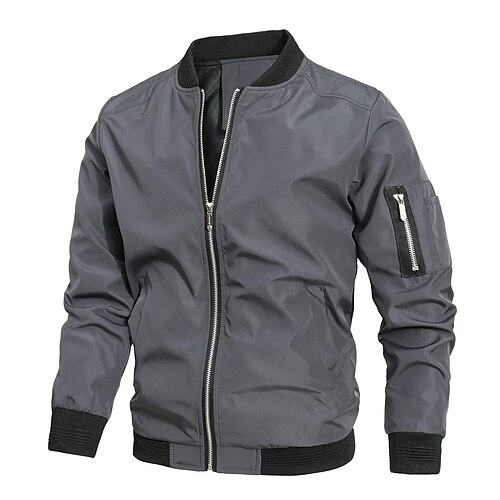 Per uomo Giubbotto bomber Giacca di transizione Uscire Tasca Tutte le stagioni Semplice Classico Collo alla coreana Regolare Nero Blu marino Grigio Giacca