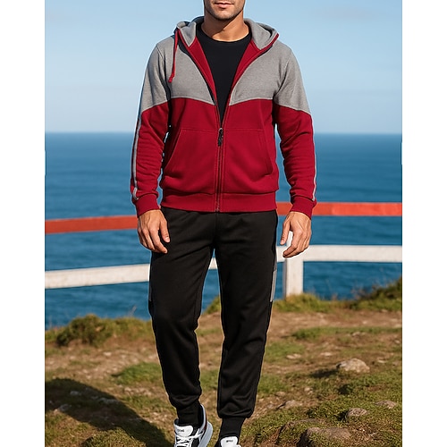 Per uomo Tuta da Ginnastica Tuta da Jogging Set di tute da ginnastica Con zip Con cappuccio Blocco di colori Completo Abbigliamento Autunno Inverno Nero Verde militare All'aperto Viaggio Sportivo