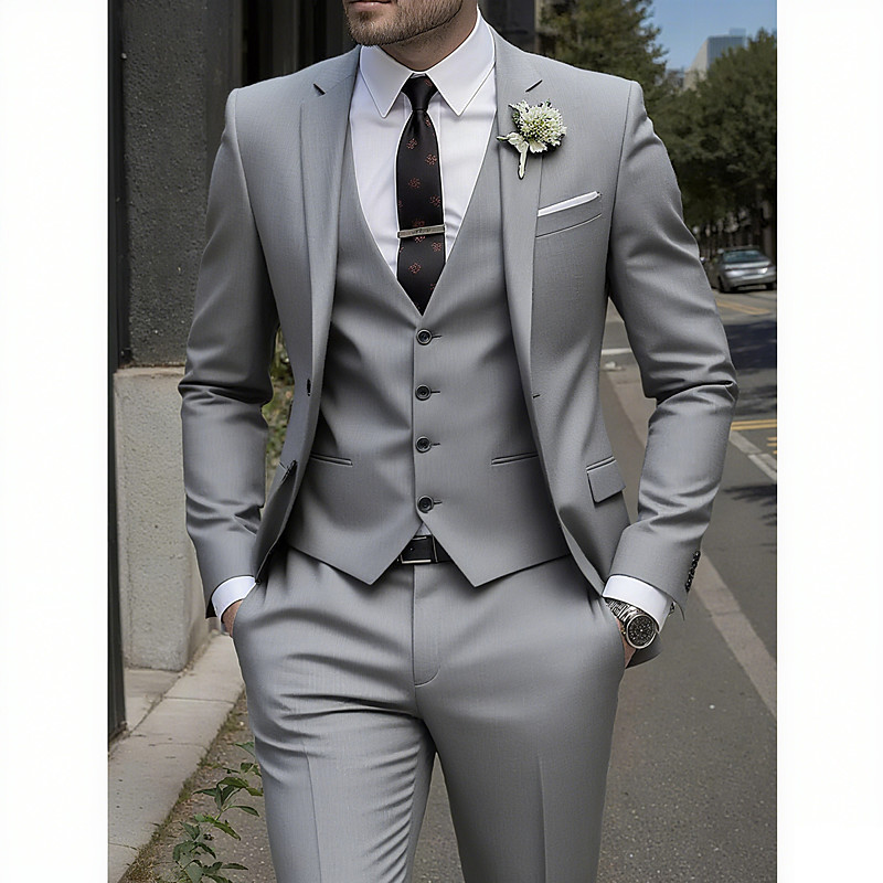 Men's Wedding Winter Wedding Suits Notch Lapel Navy Blue Fashion Formal Solid Colored Standard Fit 3 Piece Single Breasted One-button