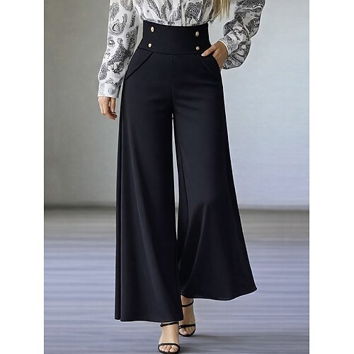 Per donna Gamba larga Chinos Elegante Moda Streetwear Lunghezza intera Vita Alta Semplice Fascia Elastica Comodo Morbido Confortevole Micro-elastico Ufficio Lavoro Streetwear Nero Primavera Autunno