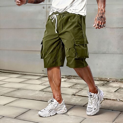Per uomo Carico tattico Pantaloncini cargo Shorts Pantaloncini casual Tasca Elastico in vita Tinta unita Comodità Traspirante Lunghezza al ginocchio Casuale Quotidiano All'aperto Moda Streetwear Nero