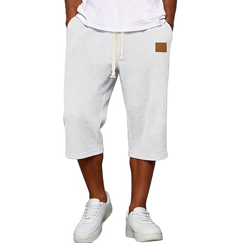 Per uomo Pantaloncini Waffle Pantaloni capri Shorts Pantaloncini casual Tasca Elastico in vita Semplice Comodità Traspirante Lunghezza al polpaccio Casuale All'aperto Spiaggia Vacanza Moda Nero Bianco