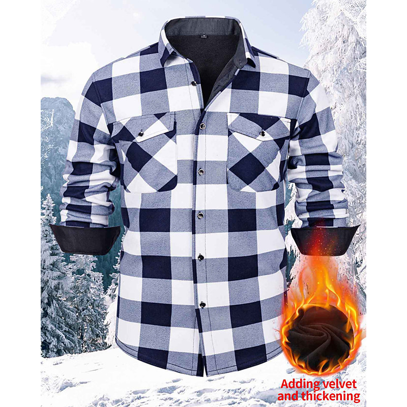 Men's Shacket Shirt Jacket Winter Jacket Plaid Vacation Daily Wear White Red Navy Blue Sky Blue Long Sleeve Lapel Fall Winter Clothing Apparel Front Pocket