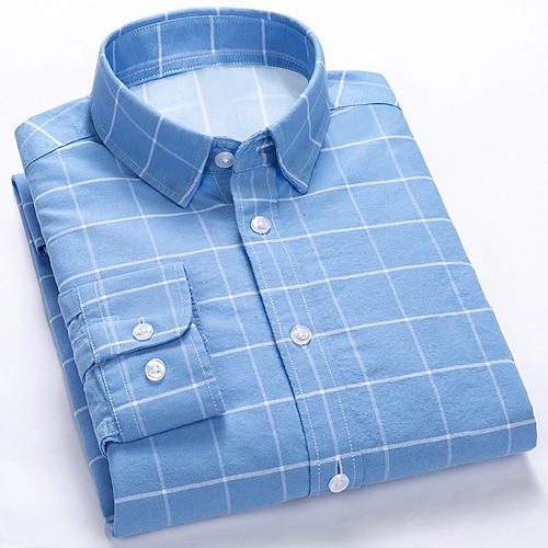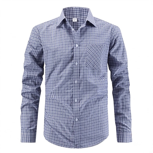 Per uomo Camicia Camicia elegante Camicia con Bottoni Plaid Matrimonio Quotidiano Blu Grigio chiaro Blu scuro Manica Lunga Collo ripiegato Primavera Autunno Abbigliamento Tasca Frontale