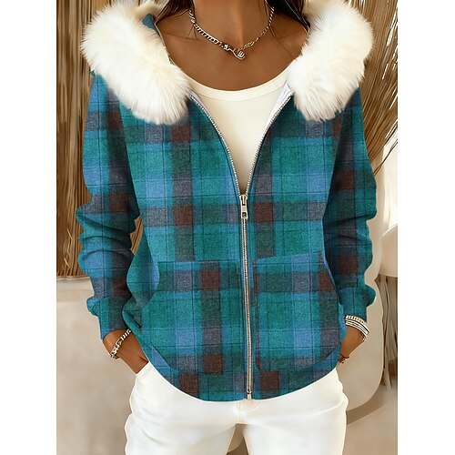 Per donna Felpe con cappuccio Grafico Plaid Casual Manica Lunga Con Cappuccio Top Regolari Abbigliamento Quotidiano Casuale Sportivo Blu Viola Marrone Verde Autunno Inverno