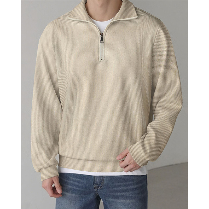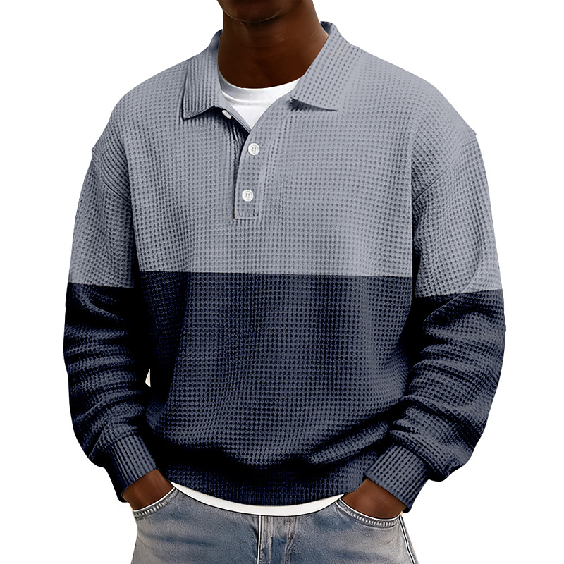 Men's Waffle Polo Shirts Zip Polo Golf Polos Shirts Long Sleeve Polo Shirts Zip Vintage Casual Daily 3D Print Fall Winter Black White Khaki
