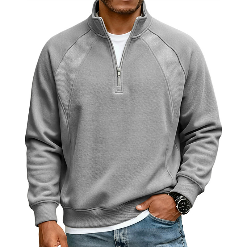 Men's Plaid Waffle Polo Shirts Zip Polo Shirts Long Sleeve Polo Shirts Grandad Collar Casual School Athleisure Holiday Daily Wear 3D Print Quarter Zip Polo Spring Fall Blue Red Navy Blue