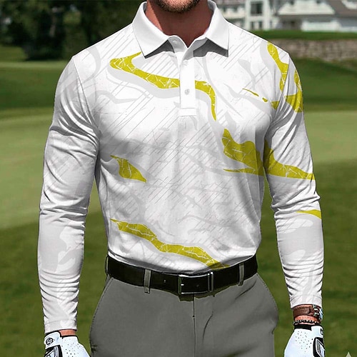 Per uomo Curva Polo Polo da Golf Manica Lunga Magliette polo Colletto Business Casual Vacanza Ufficio Streetwear Abbigliamento Quotidiano Stampa 3D Bottoni Primavera Autunno Inverno Bianco