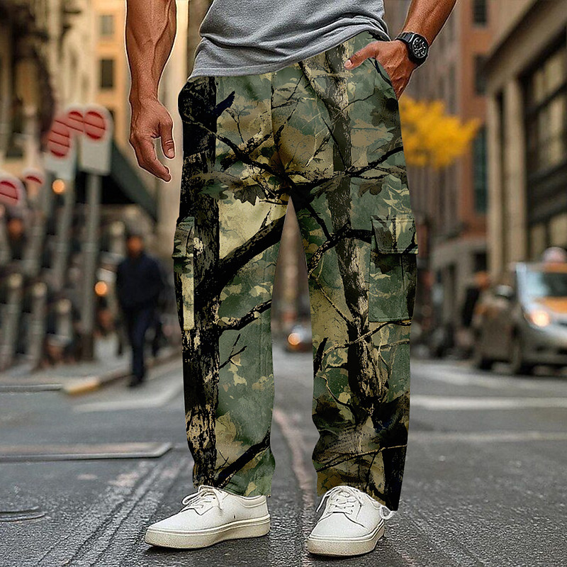 Men's Camo Camouflage Cargo Sweatpants Joggers Casual Pants Mid Waist Casual Outdoor Athletic Hunting Elastic Drawstring Waist Open Bottom Tactical Pants with Pockets Spring Fall 3D Print Blue Green