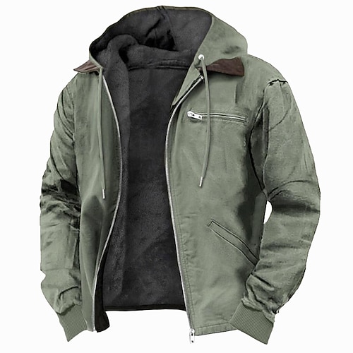 Per uomo Felpa con cappuccio Felpa con cappuccio a zip intera Sherpa Linend Verde militare Blu Marrone Grigio Con Cappuccio Semplice Tasca Sport Outdoor Quotidiano Ferie Poliestere Vintage