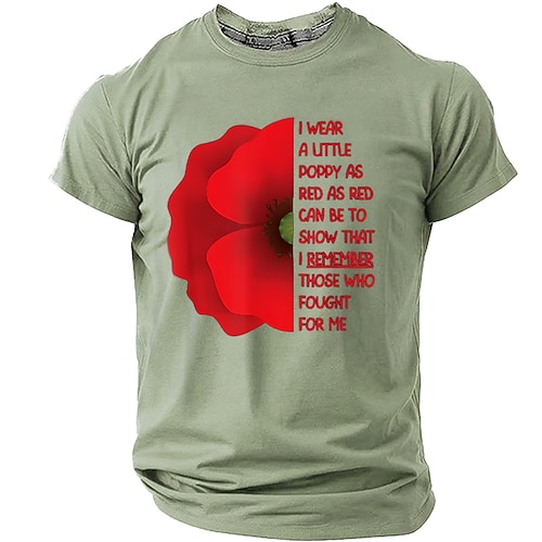 Gedenktag, Remembrance Day – Ich trage ein kleines Mohnblumen-T-Shirt, so rot wie Rot nur sein kann. Patriotisches Herren-T-Shirt mit Grafik, Kurzarm, Designer-Kleidung, Größen S, M, L, XL, XXL, XXXL
