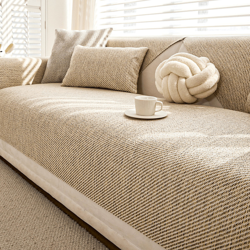 Cotton Linen Couch Cover for Pets, Pet Friendly Sofa Cushion Protector, Non-Slip Scratch Resistant Sofa Seat Pad, All-Season Modern Luxury Slipcover for Living Room Decor