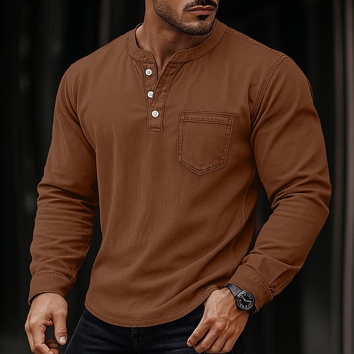 Herren Henley Hemd Langarm Henley Frühling Herbst Ganzjahres Vintage Retro Vintage Lässig Vintage-Stil Gewaschen Lässig Schwarz Dunkel Blau Grau Top T-Shirt für Herren