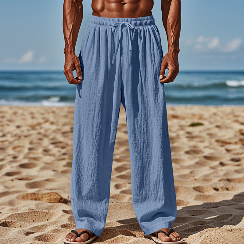 Men's Linen Pants Trousers Summer Pants Baggy Pants Beach Pants Elastic Waist Drawstring Straight Leg Plain Comfort Breathable Full Length Casual Daily Holiday Vacation Fashion White Pink Inelastic
