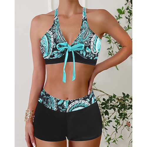 Per donna Costumi da bagno Due pezzi Shorts Costume da bagno Senza schiena Vacanza Abbigliamento da Spiaggia Grafico Girocollo Senza Maniche Costumi da bagno