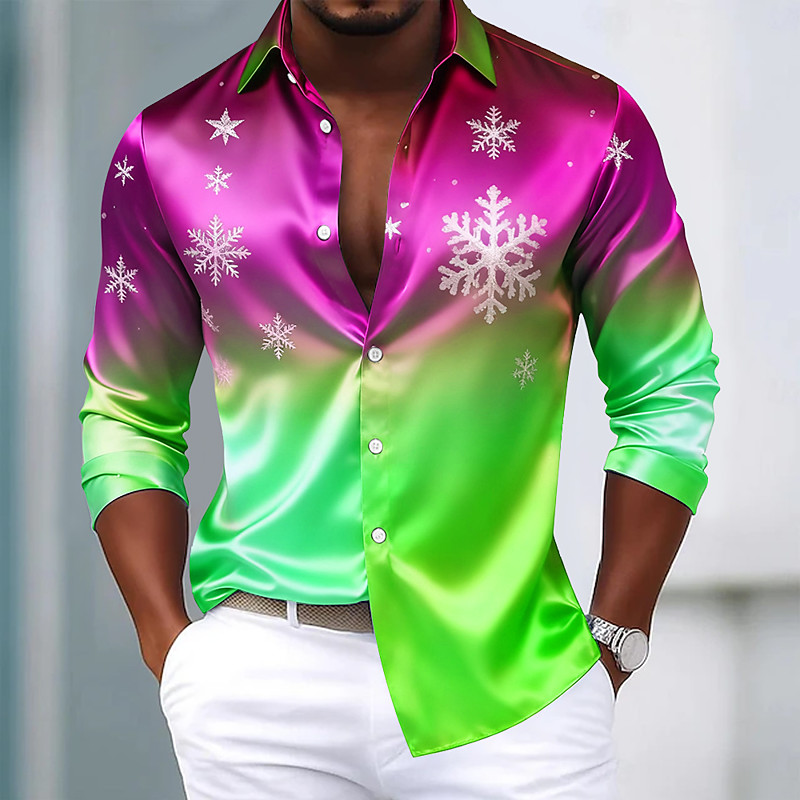 Christmas Men's Santa Claus Shirt Button Up Shirt Long Sleeve Casual Party Evening Wear Daily Fall Winter Spring Summer Shirt Collar Button Up 3D Print Blue Yellow Red Green
