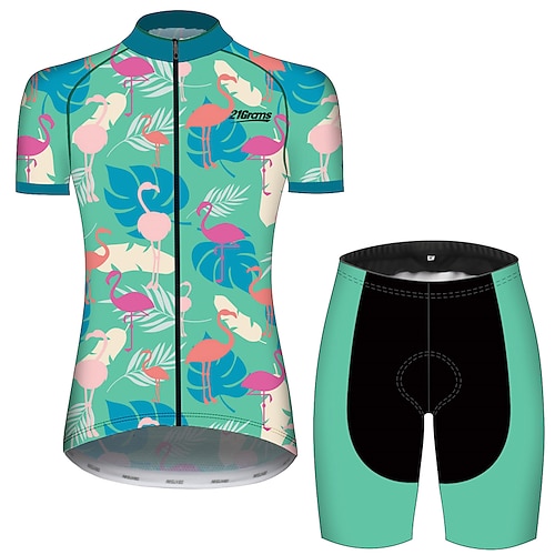 Damen Radtrikot mit Shorts Kurzarm Mountainbike MTB Straßenradsport Schwarz blau Tiermotiv Flamingo Blumenmuster Fahhrad 3D-Polster Schnelltrocknend UV-beständig Atmungsaktiv Spandex Sport Bekleidung