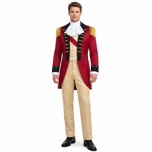 Set Americano 250 Retrò Vintage Medievale Abiti Lunghe George Washington Coloniale Costume Per uomo Costume di Carnevale Carnevale Giorno dell'Indipendenza 4 luglio Semiquincentenario Adulti Cappotto
