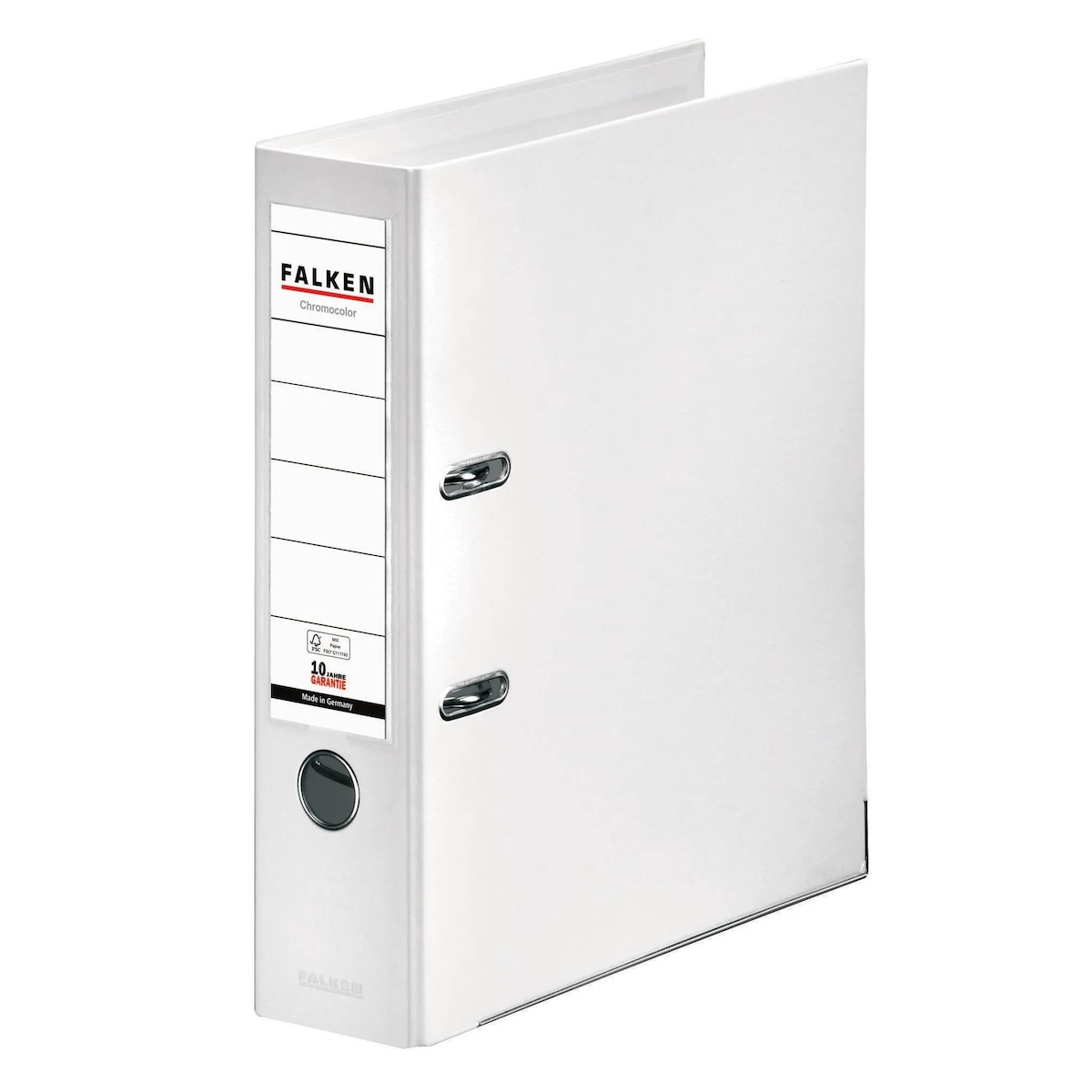 Falken 11285525 Chromocolor-Ordner A4, Rücken 80mm, mit Einsteckschild - Weiß