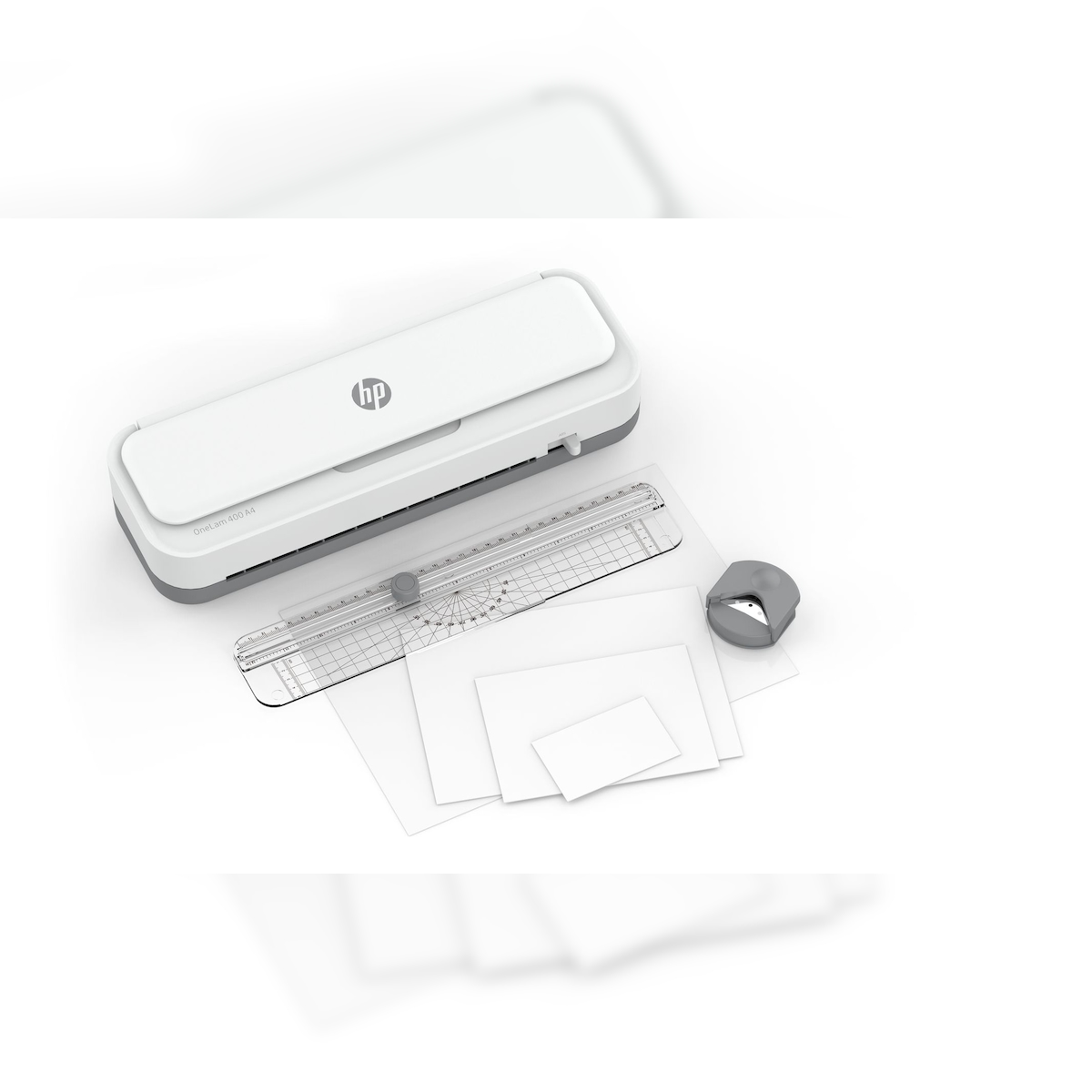 HP 4 in 1 Laminiergerät ONELam400 A4 mit Schneidelineal und Eckenrunder 15Folien