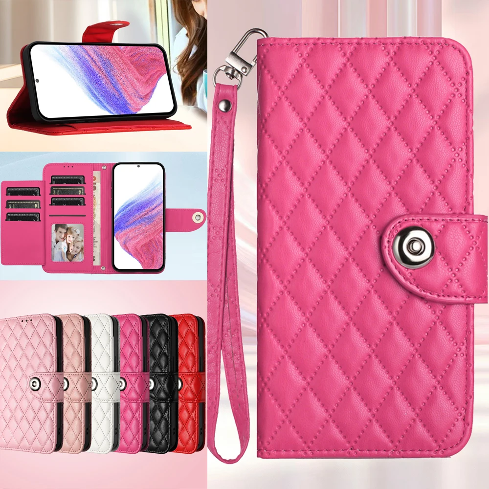 Phone Case For S25 S24 S23 S23 FE S21 Ultra Plus A55 5G A35 5G A25 A15 A14 Back Cover with Stand Holder Magnetic with Wrist Strap Retro PU Leather