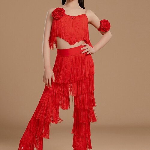 Balli latino-americani Superiore Colore Puro Con balze A fantasia Per donna Prestazioni Addestramento Mezza manica Alto Poliestere