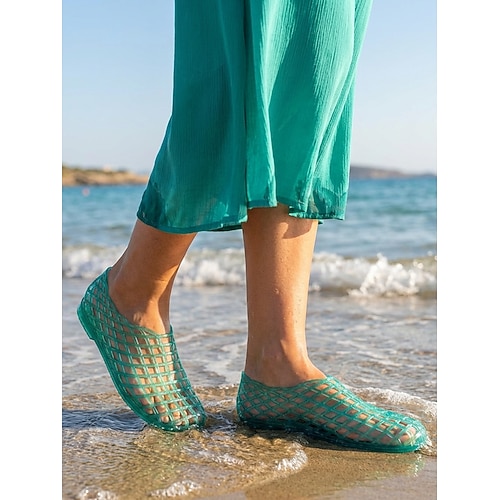 sandali da donna in gelatina rossa - scarpe da acqua traspiranti in rete traforata con comoda suola piatta per vacanze al mare viaggio sulle isole tropicali