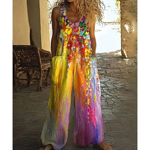 Per donna Salopette Attivo Grafico Senza Maniche Gamba larga Stampato Quotidiano Vacanza Vestibilità comoda Blu Giallo Rosso Estate
