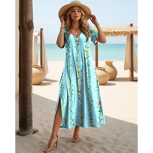 Per donna Abito maxi Abito a Tubino Vacanza Casual Spiaggia Uscire Vestibilità comoda Floreale Grafico Manica Lunga Scollo a V blu navy Rosa Beige Estate Primavera