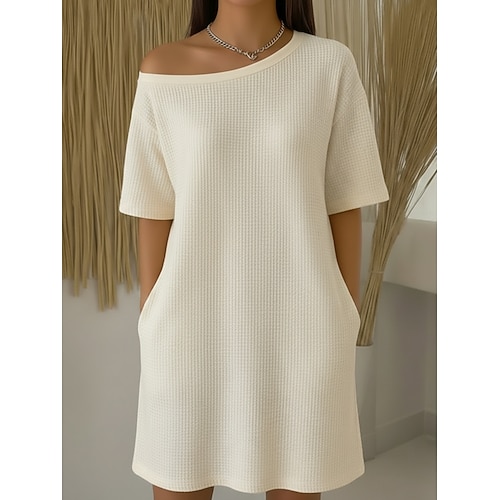 Per donna Abito al ginocchio Abito a Tubino Abito scozzese Moda Classico Quotidiano All'aperto Vestibilità comoda Semplice Manica Corta Senza Spalle Blu Nero Bianco Verde chiaro Estate Primavera