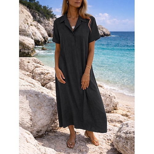 Per donna Abito Lungo Maxi Abito Abiti in cotone e lino Abito a Tubino Vestito Estivo Vestito Casual Elegante Moda Moderno Quotidiano Vacanza Uscire Vestibilità regolare Vestibilità comoda Semplice