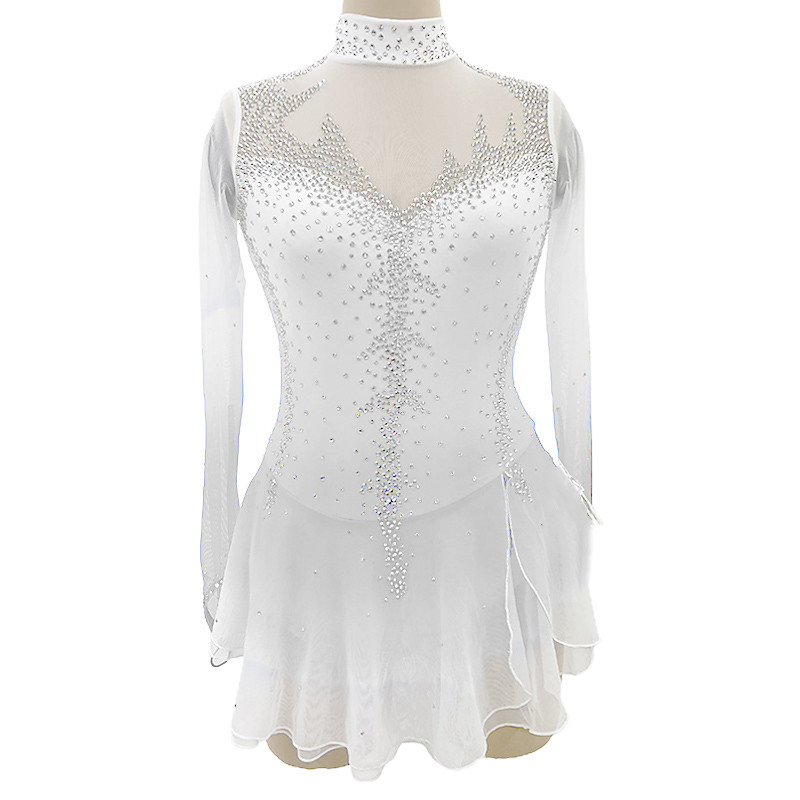 Figure Skating Dress Women's Girls' Ice Skating Dress Outfits White Dark Purple Dusty Rose Open Back Spandex Micro-elastic Training Skating Wear Handmade Classic Crystal / Rhinestone Long Sleeve Ice