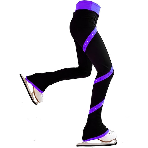 pantaloni da pattinaggio artistico da donna e da ragazza, pantaloni da pattinaggio sul ghiaccio, neri, elastici, abbigliamento da pattinaggio per gare di allenamento, termici, caldi, con