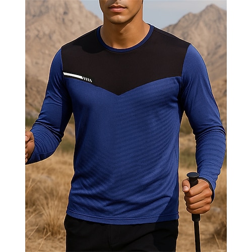 Per uomo T-shirt da escursionismo Felpa da escursione cima dell'escursionismo Manica Lunga Girocollo Maglietta Top Esterno Traspirante Asciugatura Rapida Leggero Elastico Pullover Poliestere Patchwork