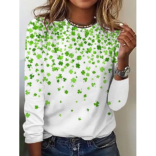 T-shirt da donna di St. Patrick per il giorno di San Patrizio trifoglio elegante classico casual maniche lunghe scollo rotondo top regolari stampa quotidiana neri bianchi primavera autunno