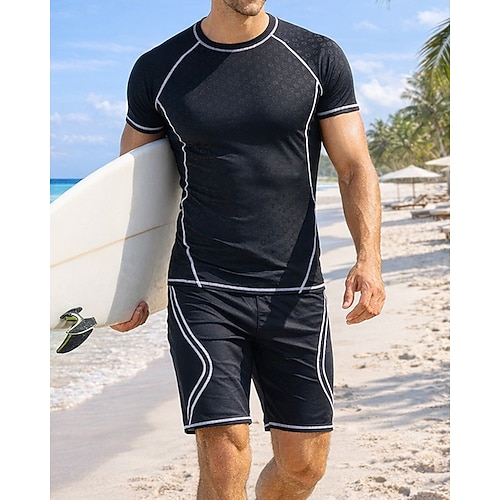 Per uomo Top sottomuta Costume da bagno 2 pezzi Tinta unita Gamba lunga fino al ginocchio Protezione UV Asciugatura Rapida Elastico Manica Corta Costume da Bagno Costume da bagno Surf Immersione