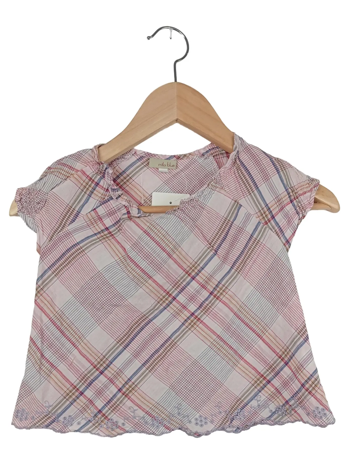 MILA BLUE Kinder Kurzarmbluse Kariert Rosa Gr. 110