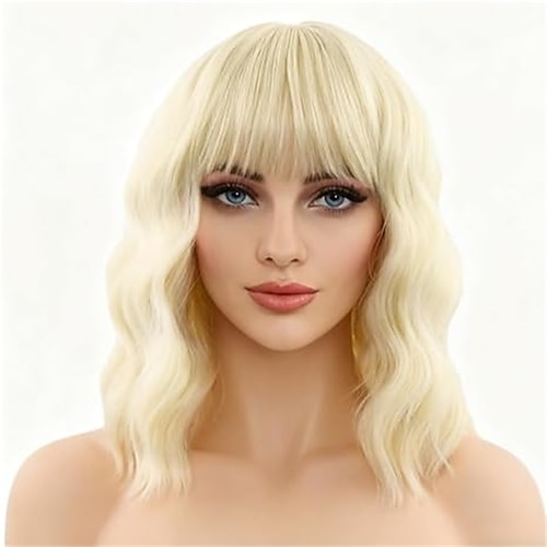parrucche viola scuro con frangia per donne parrucche bob corte e ondulate da 14 pollici, parrucca bob sintetica, parrucca riccia resistente al calore, parrucca ondulata colorata, parrucche cosplay