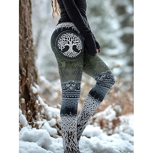 Leggings Boho Viking da donna vacanza stile etnico vintage a vita alta a lunghezza intera Stampa 3D astratta grafica ad asciugatura rapida traspirabilità morbida elastica casual athleisure quotidiana