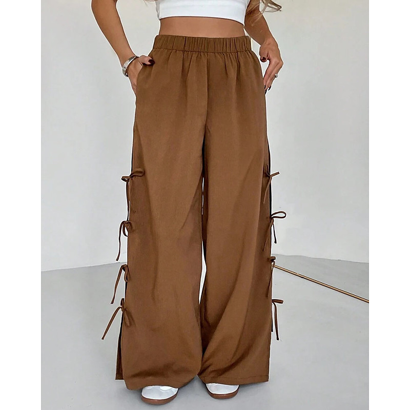 Women's Wide Leg Chinos Vacation Streetwear Casual Full Length Medium Waist Plain Elastic Waist Comfortable Micro-elastic Outdoor Vacation Street Light Coffee Fall Regular Fit