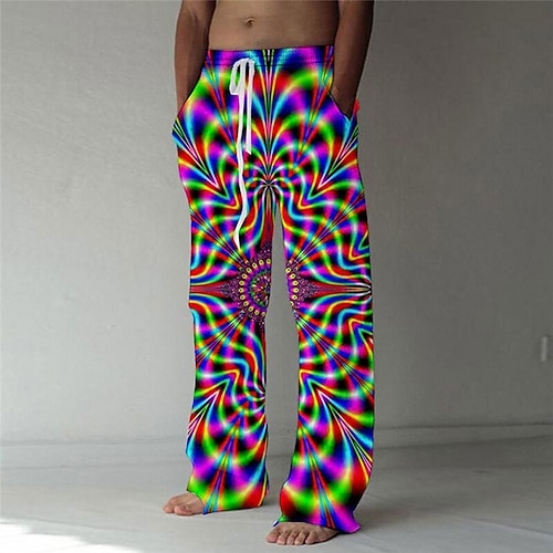 Grafik Prints Herren Casual 3D Printed Pants Hose Elastic Waist Drawstring Loose Fit Straight-Leg Summer Beach Pants S TO 3XL