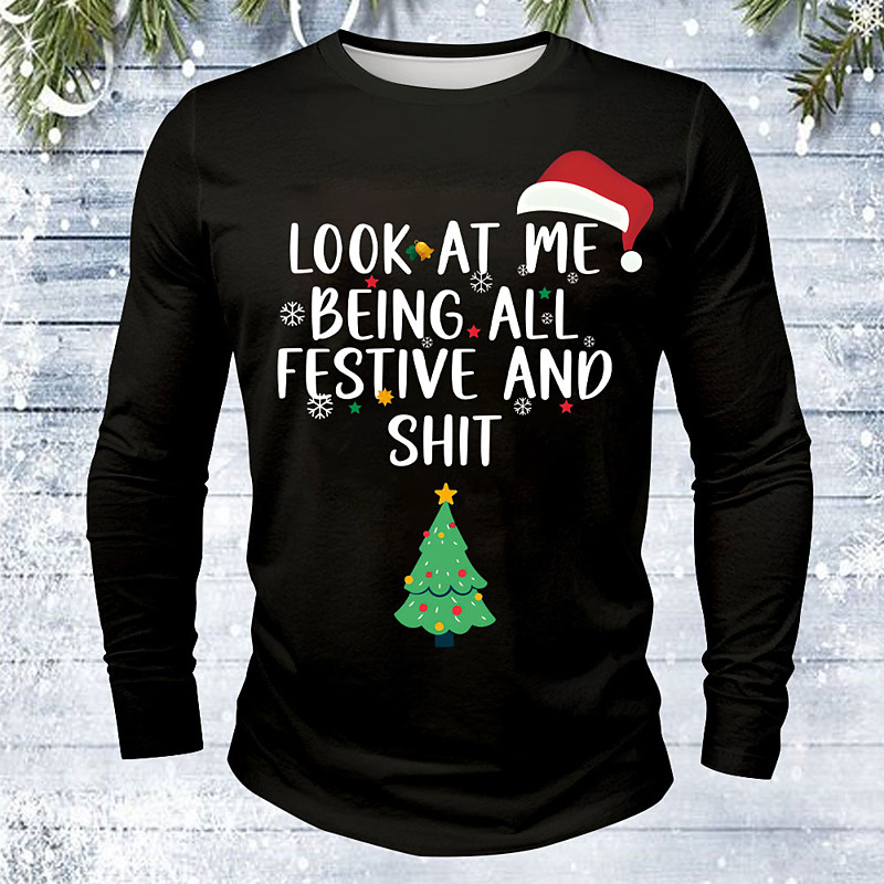 Christmas Men's Santa Claus Funny T Shirt Long Sleeve T shirt 3D Print Crew Neck Shirt Fashion Basic 3D Street Casual Daily Blue Black Red Summer Spring Clothing Apparel S M L XL XXL XXXL