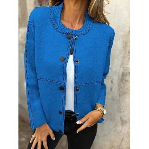 Per donna Felpa Cardigan Elegante Moda Streetwear Colore Puro Girocollo Tasca Lavorato a maglia Manica Lunga Top Regolari Maglia All'aperto Quotidiano Weekend Nero Bianco Autunno Inverno