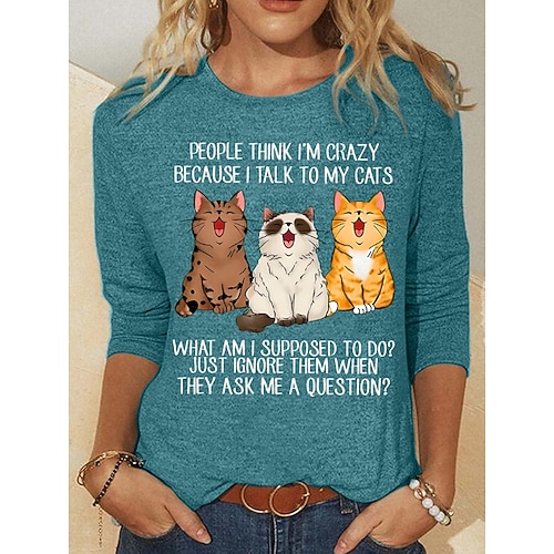 Natale Per donna Maglietta Grafico Animale Gatto Vintage Moda Elegante Manica Lunga Girocollo Top Regolari Quotidiano Weekend Stampato Blu Nero Bianco Rosa Verde Primavera Autunno