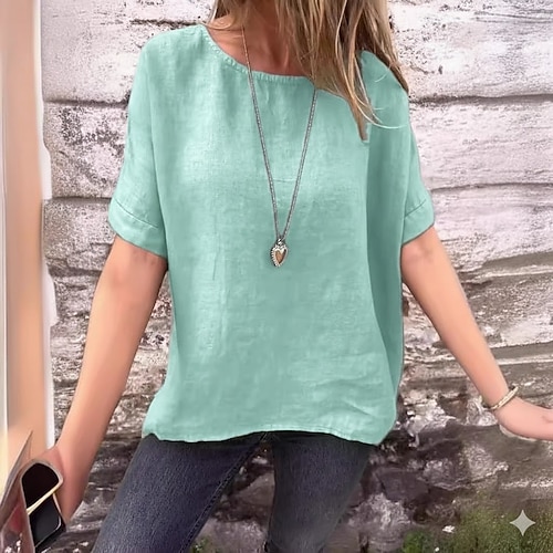 Per donna Camicie di cotone e lino Tinta unica Semplice Vintage Tropicale Elegante Top Regolari Giallo terroso latteo Nero Verde oliva Verde smeraldo Estate Primavera Autunno