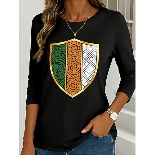 San Patrizio Per donna Maglietta Grafico Trifoglio Moda Elegante Classico Manica Lunga Girocollo Top Regolari Quotidiano Weekend Stampato Nero Bianco Giallo Verde Estate Primavera Autunno