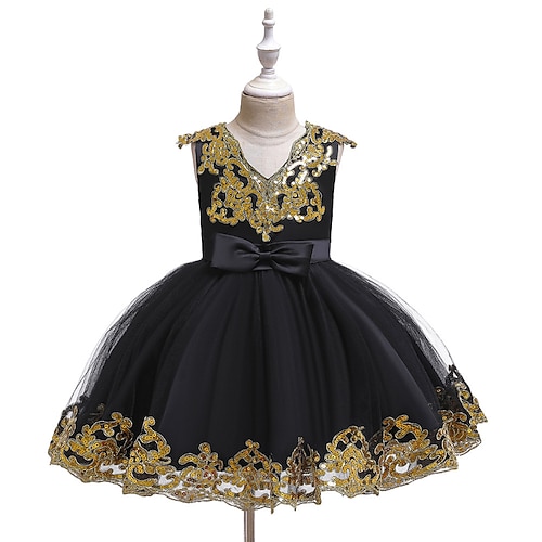 Abito da damigella d'onore bambina Ragazze Abito formale Abiti da sposa Feste Matrimonio Formale Moda Lolita Principessa Paillettes Patchwork Floreale Senza Maniche A V Blu Nero Dai 4 anni in su