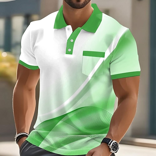 Herren Geometrisch Linie Sport-Poloshirts Kurzarm Polo-Shirts Hemden mit Kragen Lässig Athleisure Alltagskleidung 3D-Druck Knöpfe Sommer Frühling Blau Rote Purpur