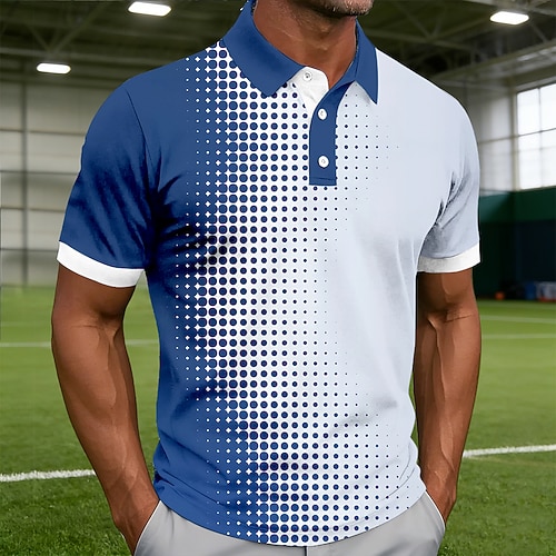 Herren Geometrisch Golfshirt Kurzarm Polo-Shirts Hemden mit Kragen Business-Casual Urlaubskleidung Formelle Kleidung Festivalkleidung 3D-Druck Knöpfe Sommer Blau Weiß Rote
